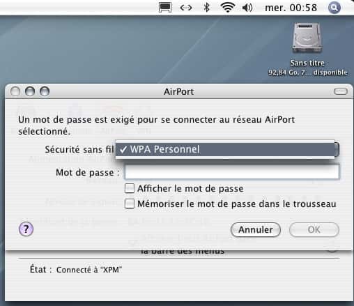 Dans la barre de menu, cliquez sur l'icône AirPort