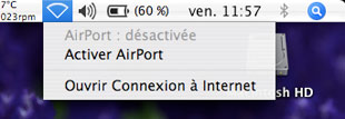 Vérifiez que l'AirPort est actif sur votre poste par le biais de cette icône