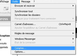 Lancez tout d'abord votre logiciel Outlook. Cliquez sur le menu Outils, puis sur Comptes.