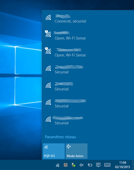Affichez le menu WiFi en appuyant ou en cliquant sur l'icône WiFi