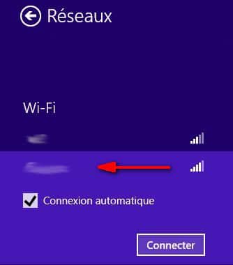 La fenêtre suivante apparaît. Sélectionnez le réseau sans fil de la TiBox et cliquez sur Connecter (en cochant Connexion automatique, l'ordinateur se connectera tout seul au réseau lorsque celui-ci sera à portée).