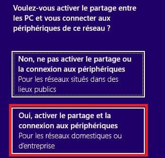 Sélectionnez ensuite Oui, activer le partage et la connexion aux périphériques.