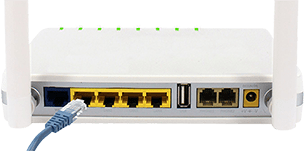 Il représente la solution la plus fiable pour connecter votre ordinateur à la TiBox. La TiBox possède 4 ports Ethernet facilement, identifiables par leur couleur jaune, ce qui vous permet d'y relier autant d'ordinateurs (d'autres pourront y être raccordés, notamment via le WiFi ou l'ajout de ports Ethernet supplémentaires grâce à un switch).