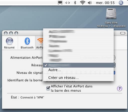 Dans la barre de menu, cliquez sur l'icône AirPort