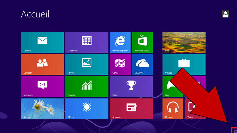 Pointez le coin inférieur droit de l'écran (bouton ).
