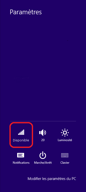 Affichez le menu WiFi en appuyant ou en cliquant sur l'icône WiFi